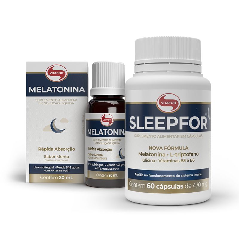Descansar faz bem! O Kit Saúde do sono é composto por: 1 Sleepfor de 60 caps e 1 Melatonina 20ml.